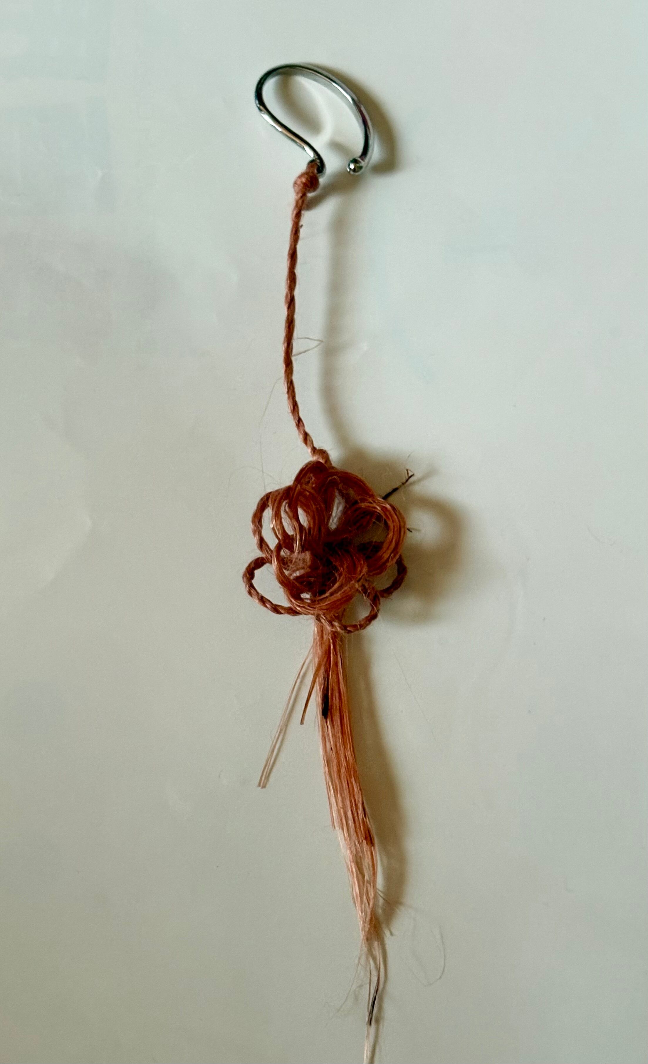 茜染の栃木野洲産聖麻を使ったイヤーフックです。